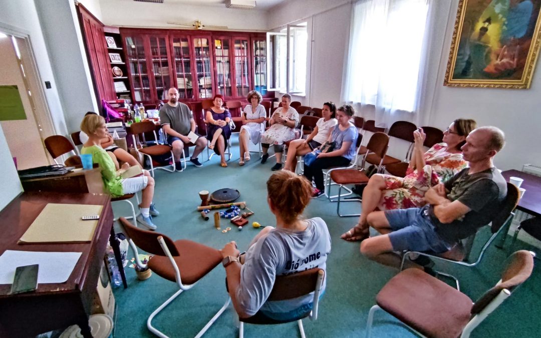 A koboldok igazából lelkes közreműködői kilenc civil szervezetnek. Ezek az egyesületek a fejükbe vették, hogy csinálnak a városuk körül a természetben egy ösvényt, ahol a megállókban mesék vannak, amelyek szólnak élőben, felvételről, tábláról… Most ők gyűltek össze, hogy megbeszéljék az eredményeiket és a terveiket. Voltak zengővárkonyi, závodi, koronczói, lébényi és más koboldok. Igazán megérdemeltek egy meseterápiás foglalkozást…